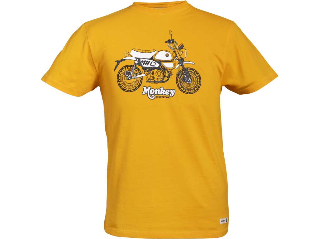 100% bavlněný žerzej, 200 g/m². Ikonycký motocykl Monkey na hrudi, potisk křídlem Honda na zádech pod krkem. Kovový nýt s reliéfním logem Honda na levém boku.