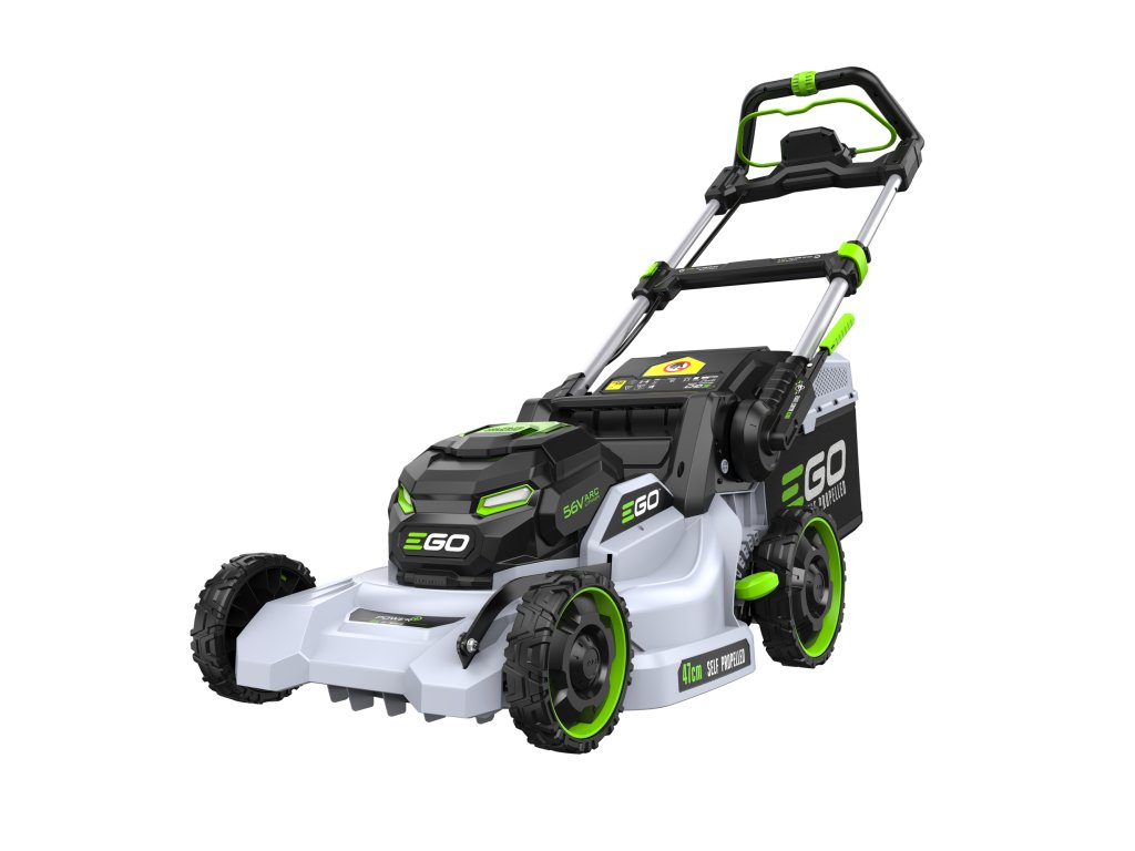 Model EGO LM 1914E-SP - záběr sečení 47cm a plynule proměnlivý pojezd, volič režimu sekání, objem sběrného koše 55L, teleskopická a výškově nastavitelná komfortní rukojeť.